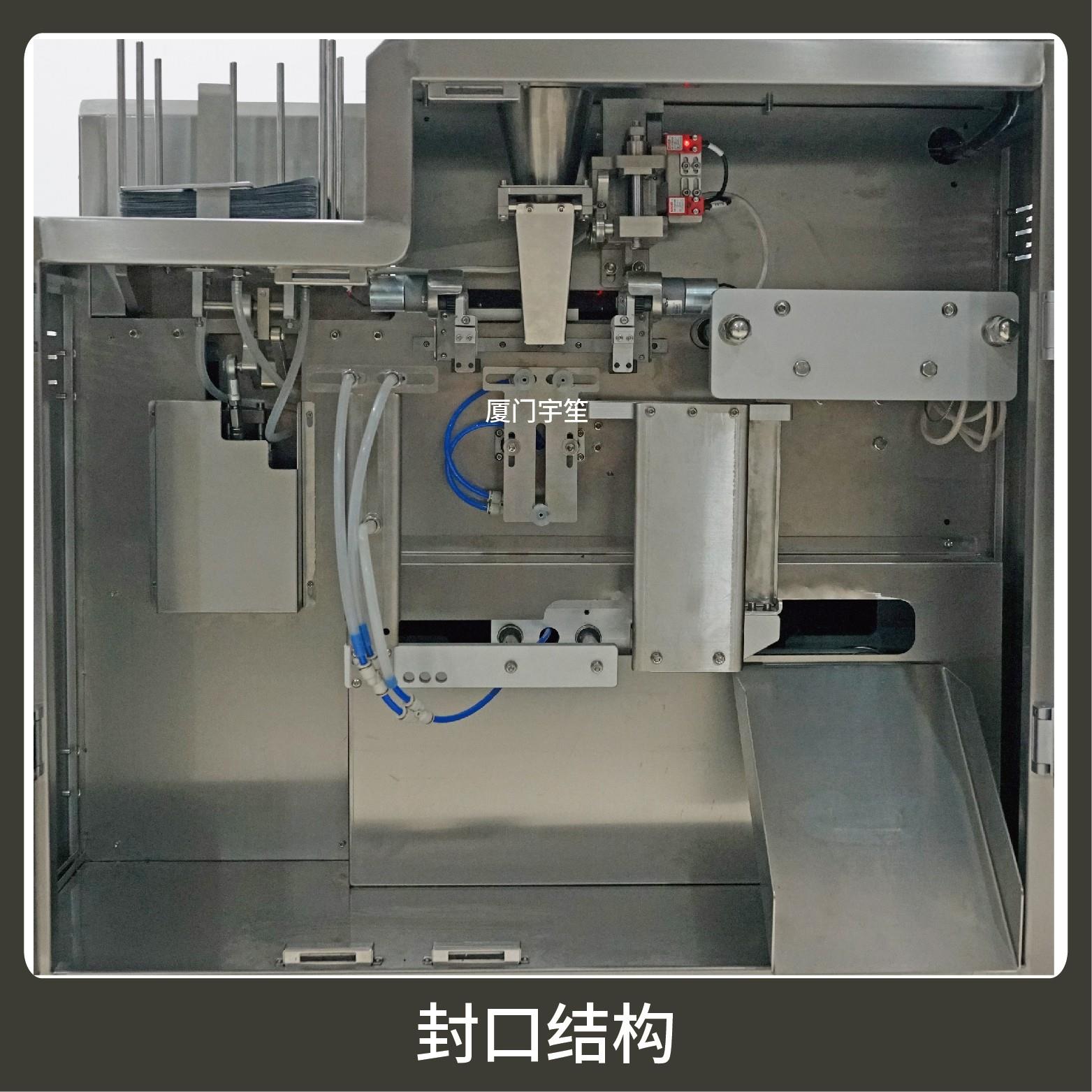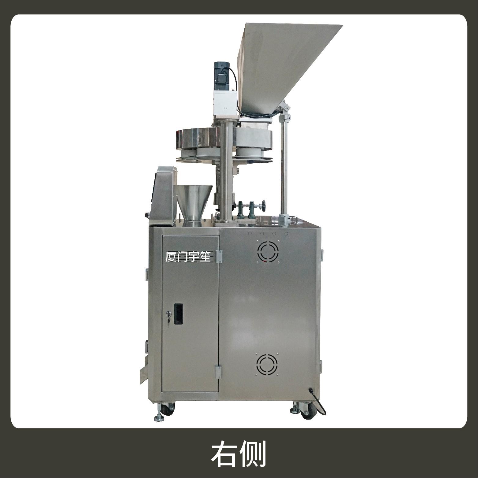 2、調(diào)試方便,占用空間小。包裝流程全自動,無需人工操作??筛鶕?jù)充填物料的性質(zhì)選配不同的下料結(jié)構(gòu)。